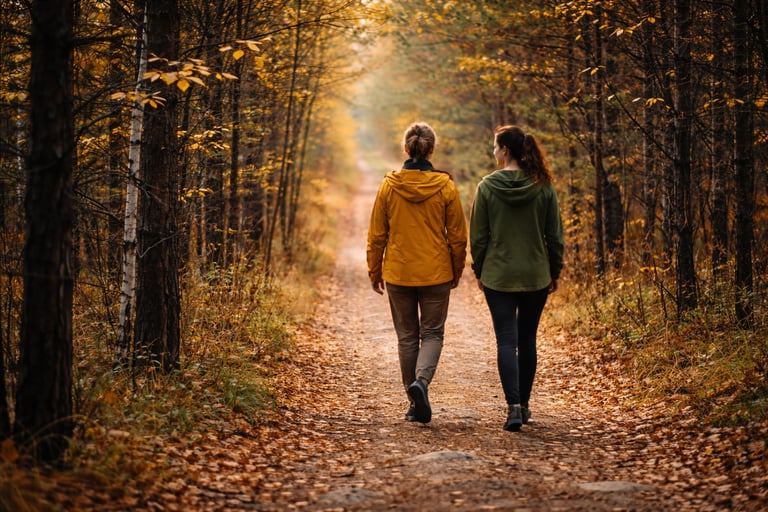 Wandelen naast elkaar — in plaats van tegenover elkaar — zorgt bovendien voor een andere dynamiek. Het gesprek mag vrijer stromen, stiltes krijgen ruimte en moeilijke thema’s voelen vaak minder zwaar.